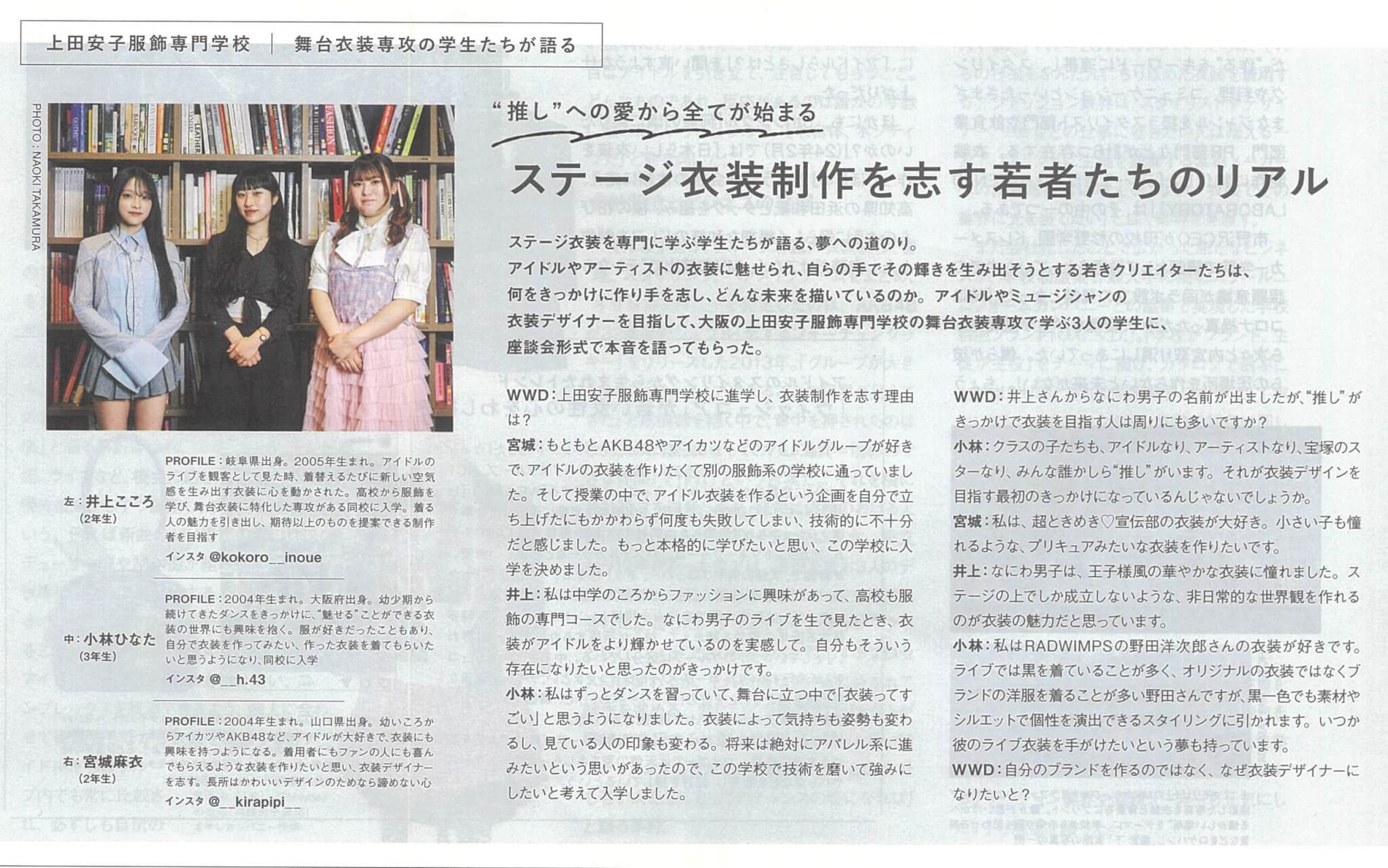 【舞台衣装専攻の学生たち】WWDJAPANに掲載されました