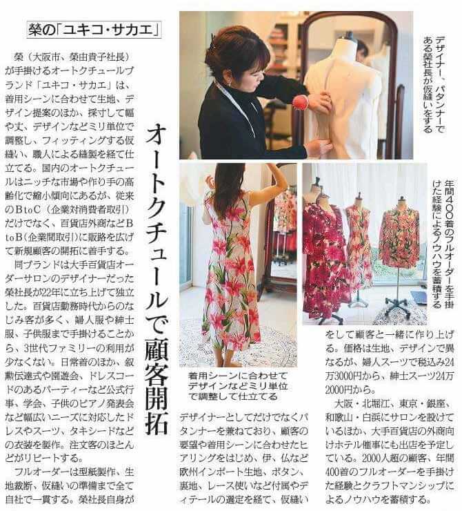 卒業生でオートクチュールブランドを手掛ける榮さんが、繊研新聞に掲載されました!