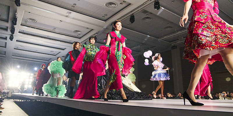 「ファッションビジネス学科 スタイリストコース 2年」の学生たちによるスタイリングショー。